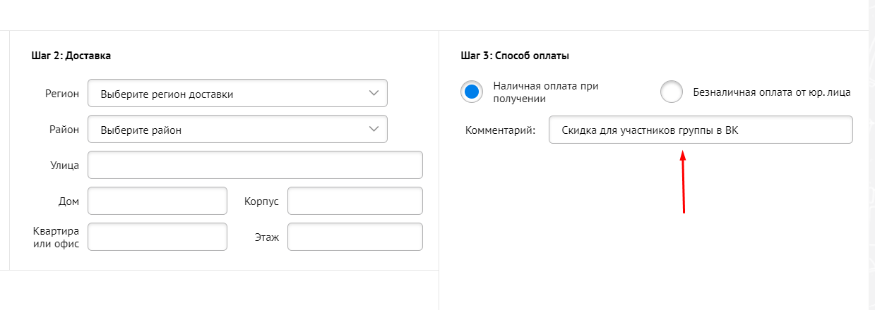 При оформлении заказа, вам необходимо в поле "Комментарий к заказу" оставить примечание - "Скидка для участников группы в ВК", либо при оформлении заказа по телефону сообщить оператору, что вы являетесь участником нашей группы и хотите приобрести товар по спец цене.