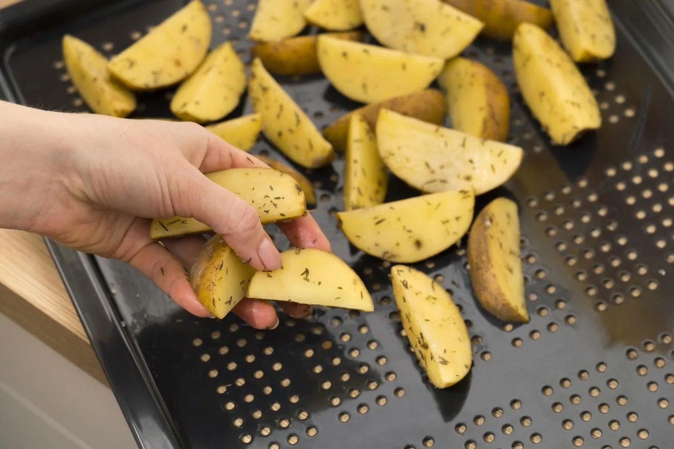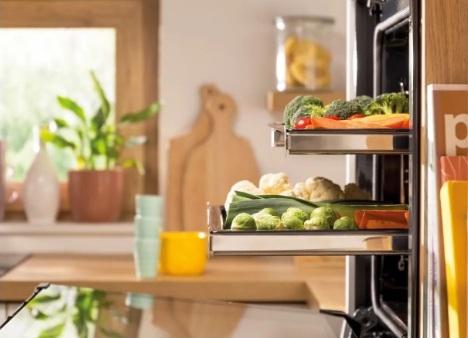3. Режим интенсивного запекания AirFry помогает приготовить жареные блюда без лишних калорий, так как с помощью использования горячего воздуха не требуется использование жира для получения хрустящей золотистой корочки. Этот режим подходит для небольших кусков мяса, рыбы, овощей или замороженных полуфабрикатов: картофеля фри или наггетсов. В комплекте обычно поставляется перфорированный эмалированный противень, который обеспечивает более интенсивную циркуляцию горячего воздуха, делая блюда еще более вкусными и хрустящими. Противень также подходит для приготовления блюд на пару в духовках с функцией SteamAssist.