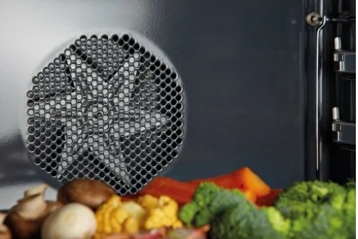 12. Динамическая система охлаждения DynamiCooling (DynamiCooling+): эта функция обеспечивает постоянное эффективное охлаждение корпуса духовки и предупреждает возможные неполадки, вызванные высокой температурой. В случае сильного нагрева, например, при пиролитической отчистке, датчик тепла продлевает работу системы охлаждения, пока температура внешних поверхностей духовки не опустится до безопасных 60 °С.